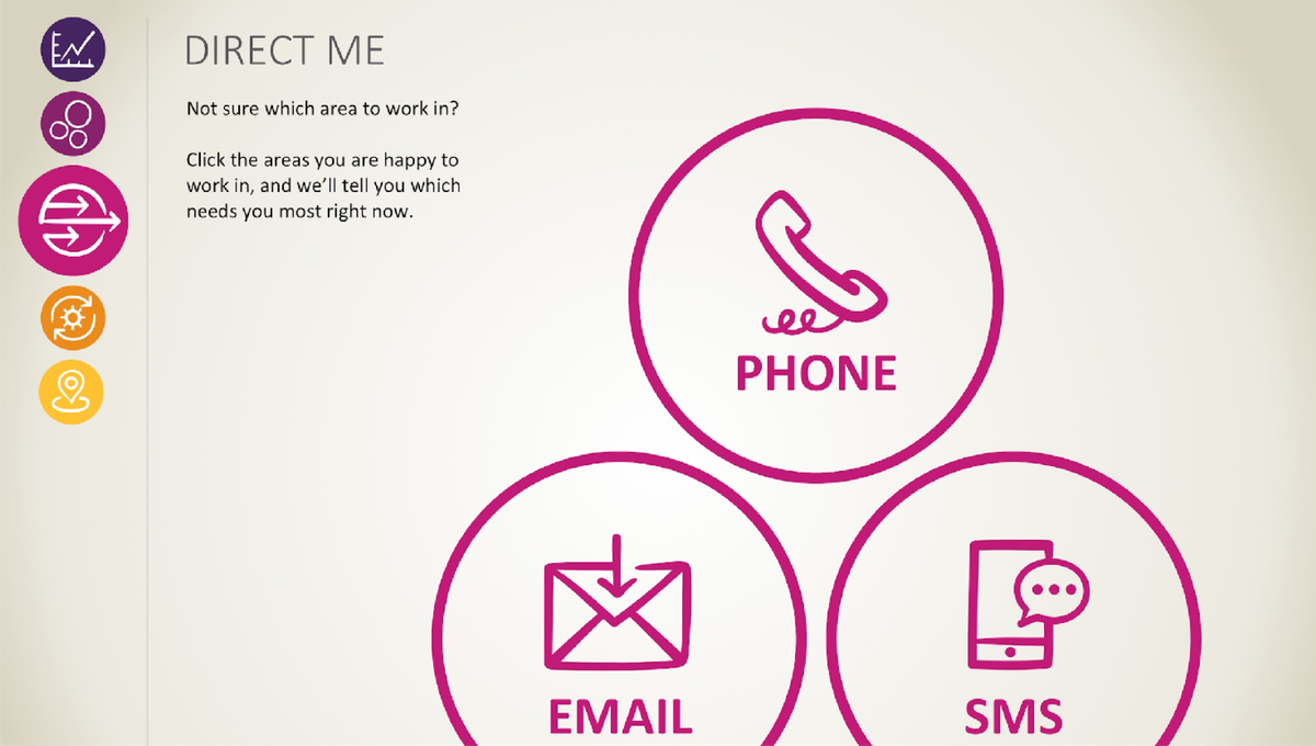 The Developer Society designed and developed an intelligent yet easy-to-use and interactive volunteer dashboard that helped identify trends in helpline demand. The dashboard uses a predictive model of capacity and demand to help volunteers. This meant that volunteers could match their availability to peaks in demand and help more people. We also integrated with SMS, phone and email services so volunteers could choose how they provided support.